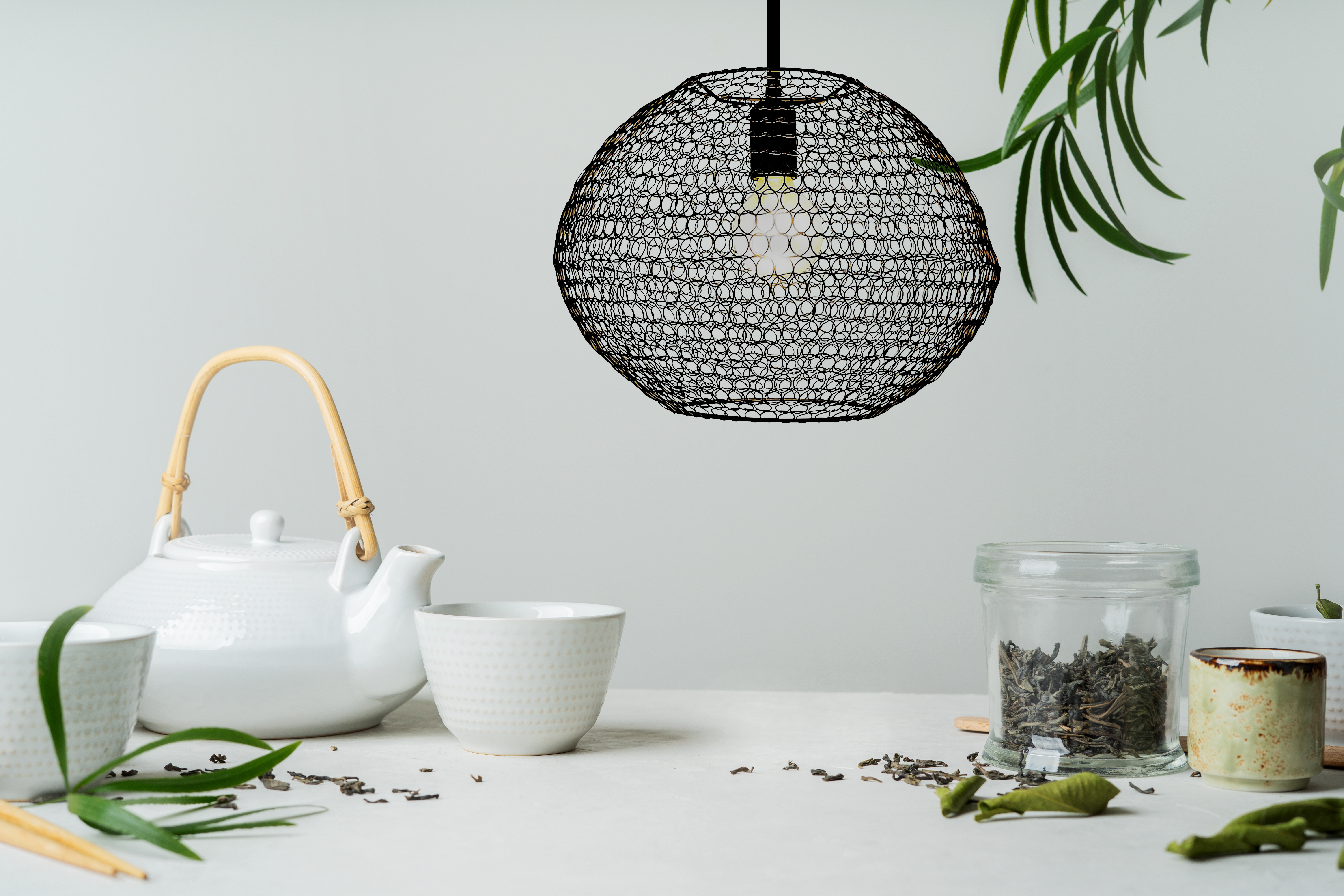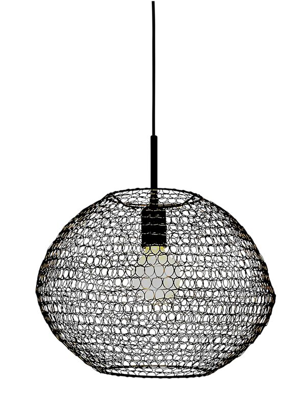 Fizz - kul taklampa i trådarbete av svart metall. Krokupphäng med takkopp i svart plast.