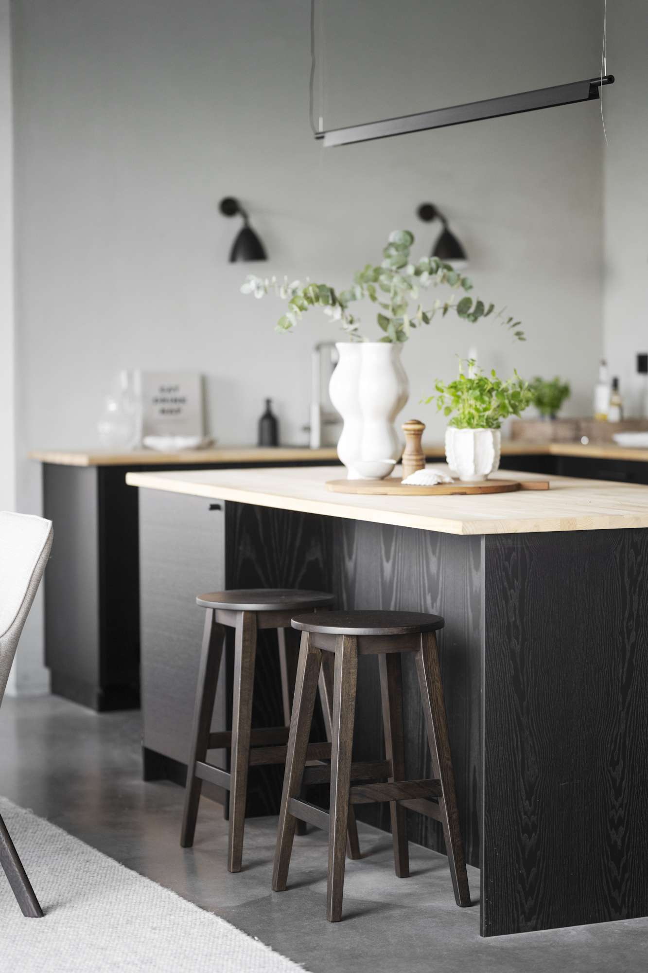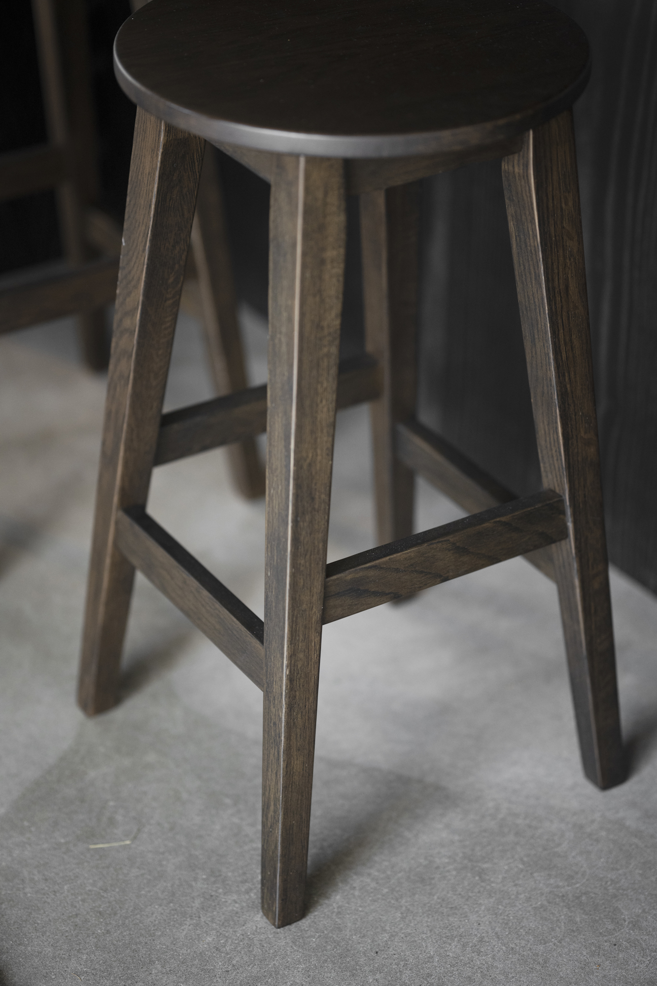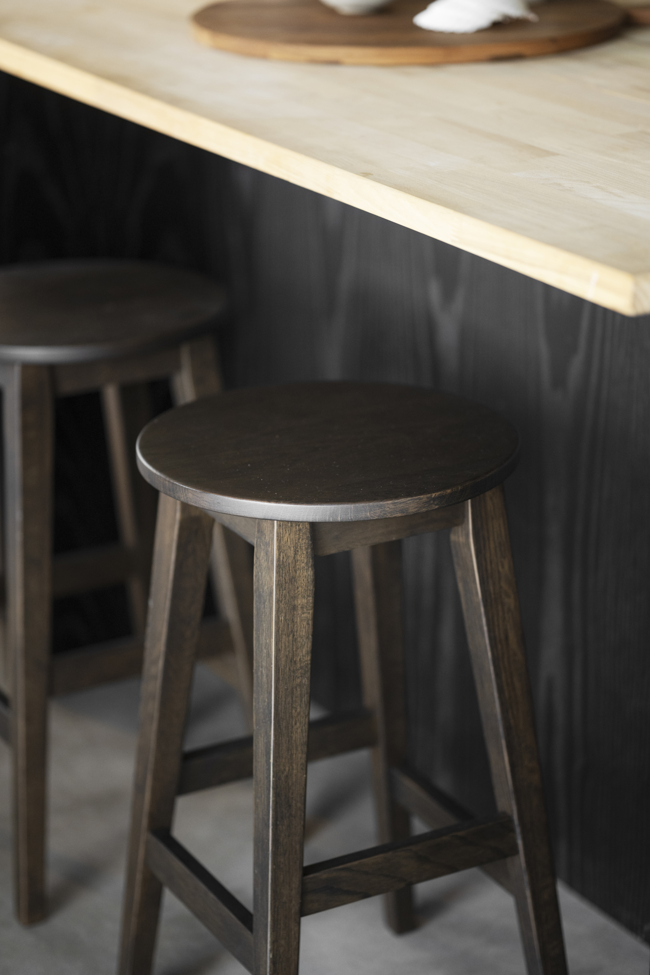 Austin barpall i massiv brunlackad ek med rund sits. Tidlös design som passar i de flesta hem. Finns i flera färger.