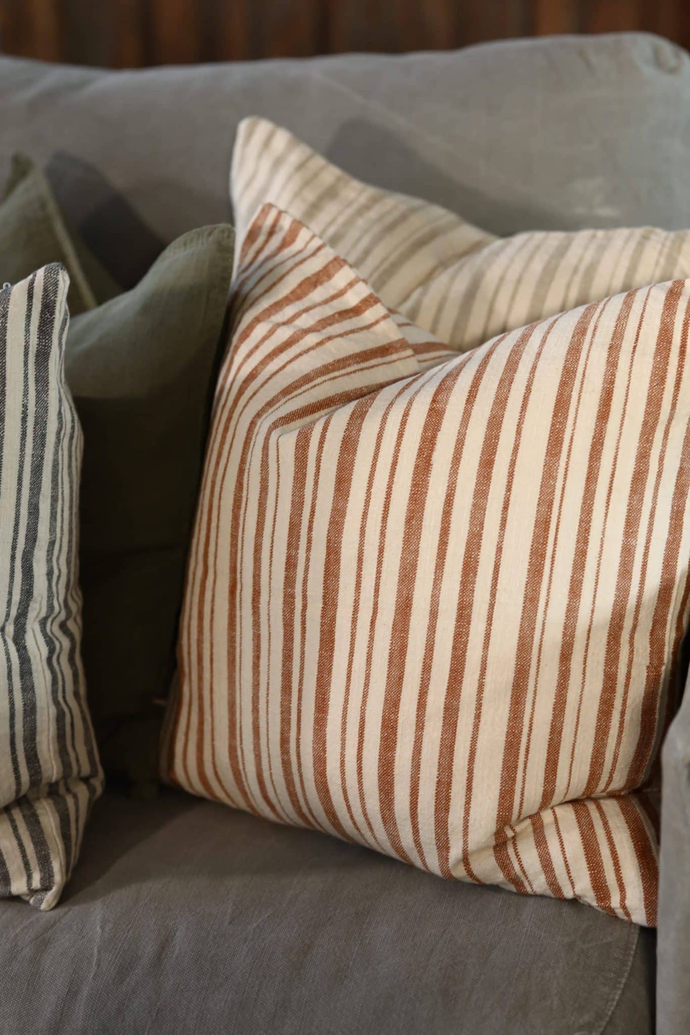 Kuddfodral med garnfärgat randigt mönster och en mjuk tvättad bomullsstruktur, med dragkedja i nederkant. Mått 45x45 cm. Innerkudde köpes separat. För ett välfyllt utseende köp gärna en innerkudde som är något större, ca 50x50 cm. Produkten är certifierad enligt STANDARD 100 by OEKO-TEX®. Certifieringen garanterar att produkten är testad och fri från ämnen som kan vara skadliga för hälsan och miljön.