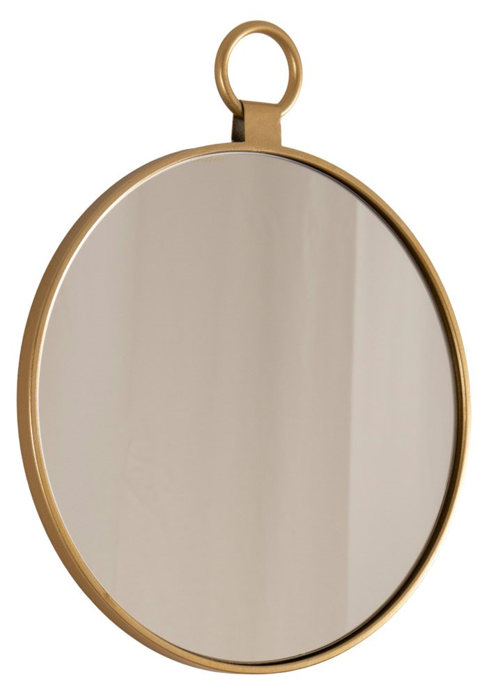 Stilren rund spegel med ram i guldfärgat järn.