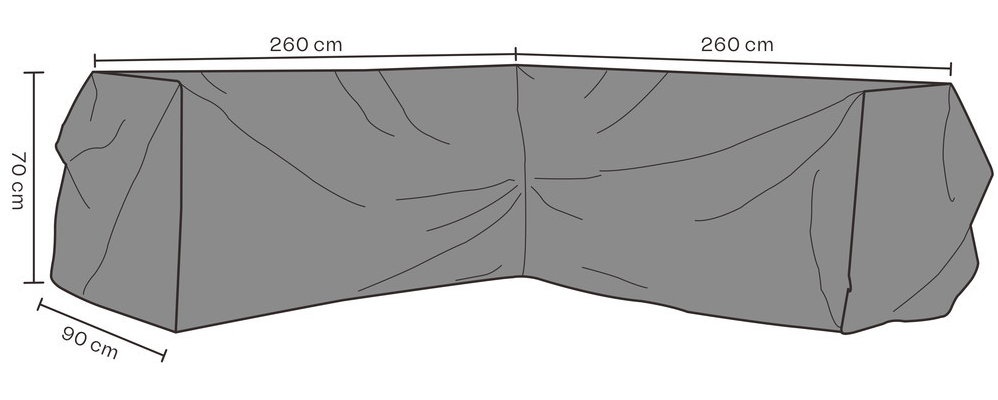 Möbelskydd som passar hörnsoffa 2H2 med en maxlängd på 260 cm och en höjd på 70 cm.