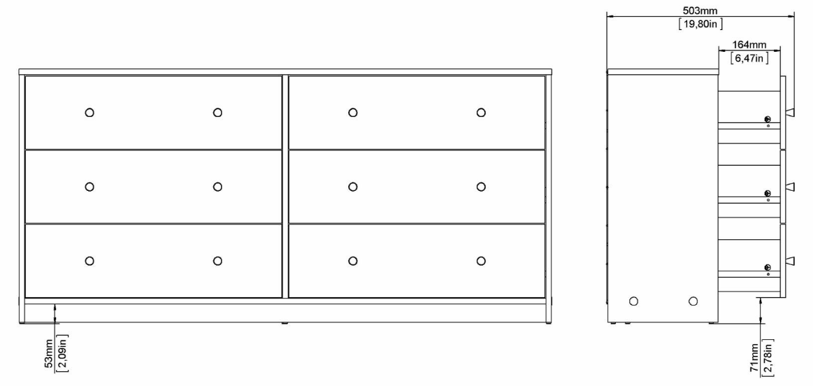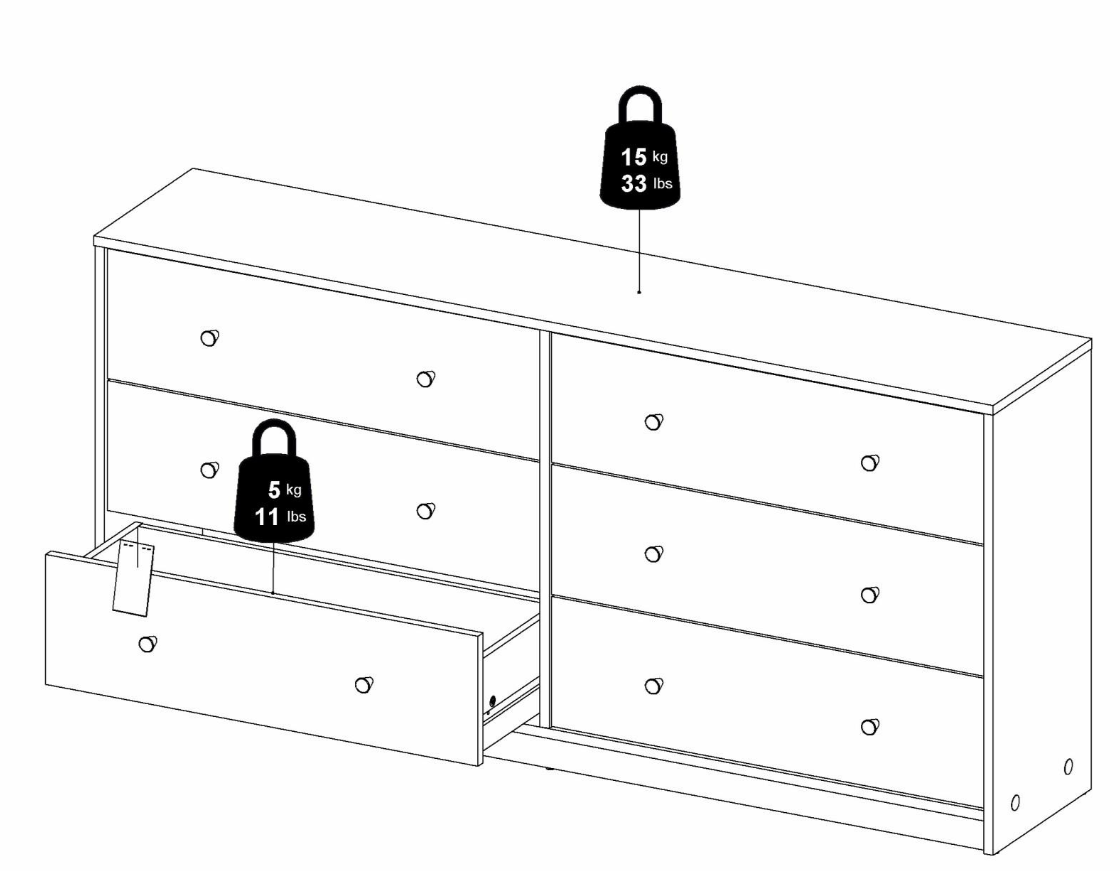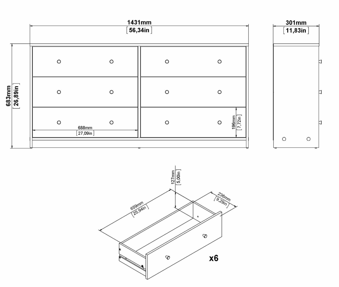 May byrå dubbel 3+3 lådor vit
