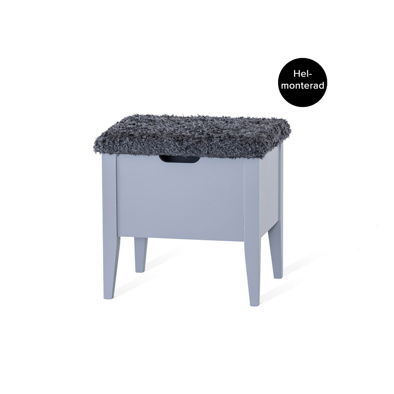 Välj mellan olika klädslar på toppen – grå fårskinnsimitation, äkta fårskinn, ljusgråa tyget Chelsea eller bruna tyget Abriamo. På insidan av bänken finns ett rymligt fack med en praktisk skiljevägg, som även går att tas bort för att göra plats för större föremål.