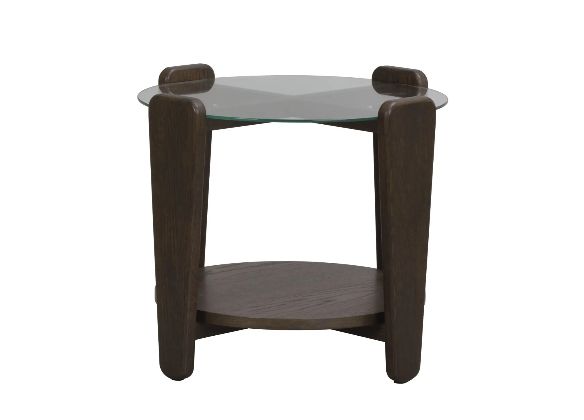 Arran soffbord Ø52 är ett stilrent soffbord kombinerat med en modern skandinavisk design. Glasskivan som möter det bruna eken ger det en snygg kontrast som inger elegans. Soffbordets rundhet skapar en mjuk känsla som passar till de flesta soffor. Arran soffbord finns i två olika storlekar. Det som är minst kan användas som sidobord eller placera det separat eller tillsammans med det större Arran soffbordet så blir det en känsla av satsbord. Finns även i vitpigmenterad ek. Massiv ek i ben och kryss, spånskiva med ekfanér i hylla, 5mm härdat glas