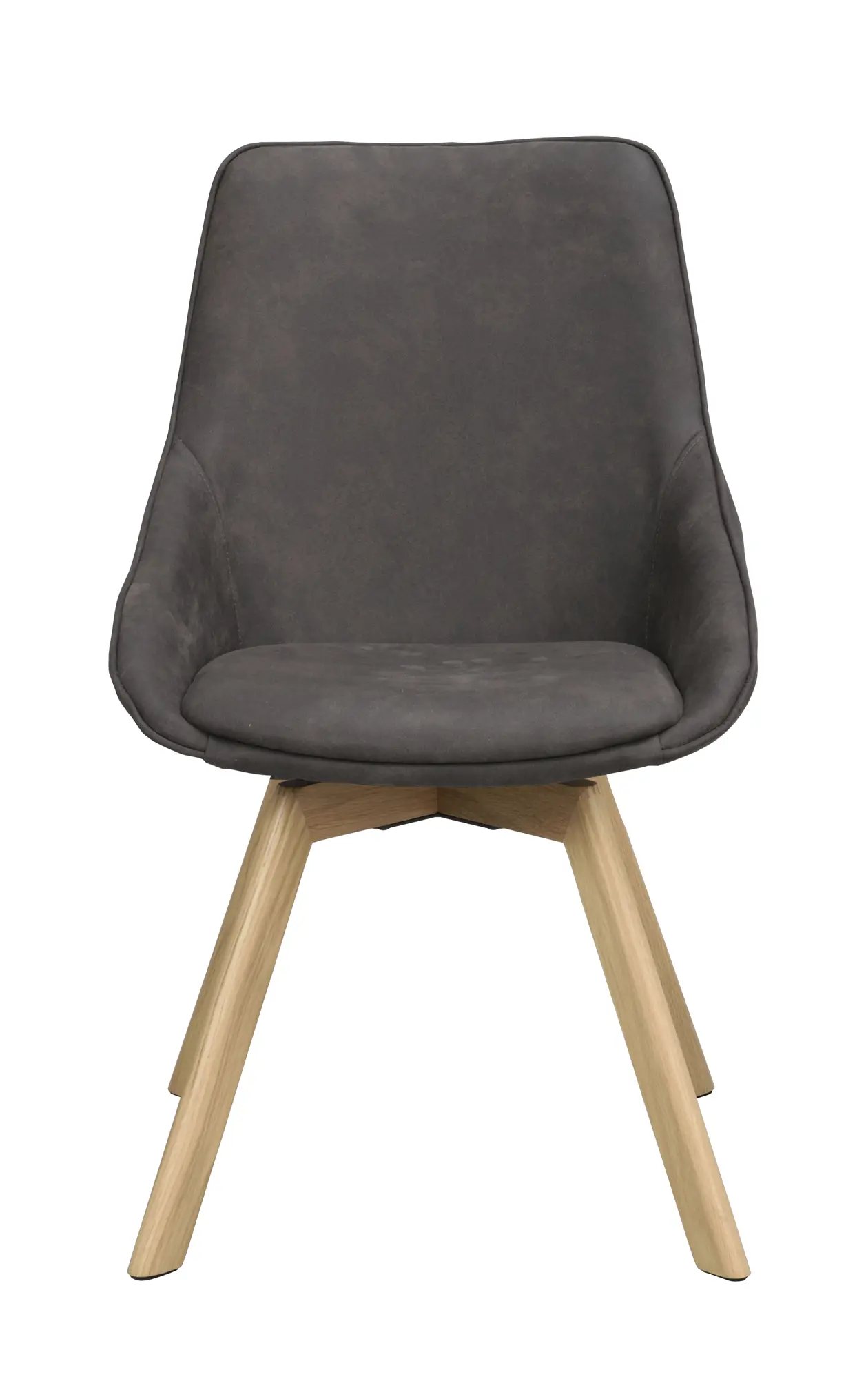 Alison stol mörkgrå microfiber/bruna ekben snurr