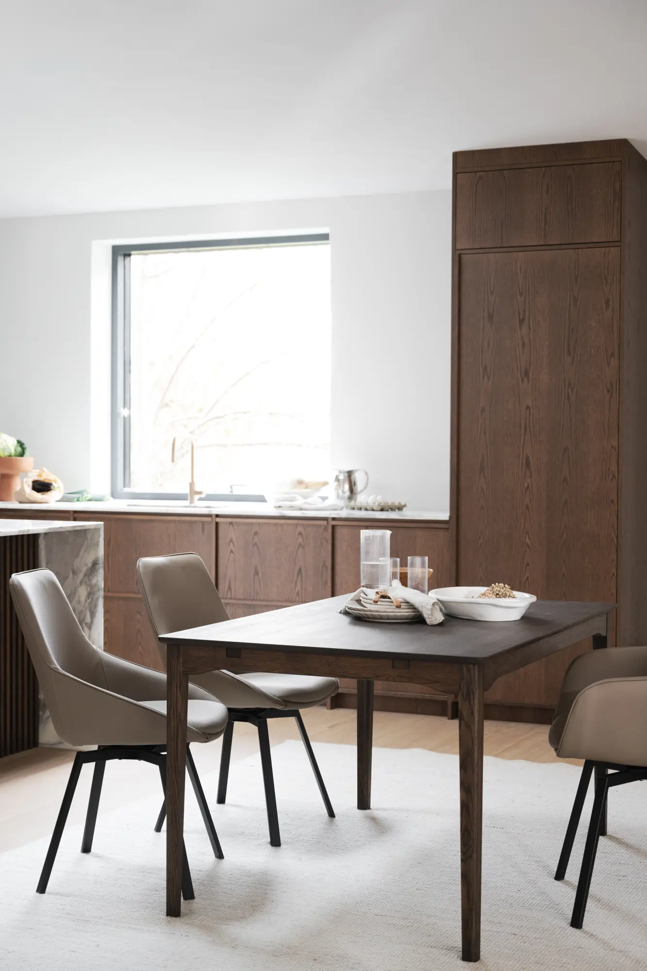 Markham är ett nätt rektangulärt matbord. Bordet är tillverkat av massiv brunoljad ek med eleganta detaljer såsom en välvd profil under bordet och avrundade ben. Denna design gör matbordet mycket omtyckt och är därmed hållbart över generationer. Matbordet är anpassningsbart och kan förlängas till 185 eller 230 cm med en eller två tilläggsskivor, vilket gör det flexibelt beroende på antal gäster. Markham består också av ett större matbord samt avlastningsbord. Kollektionen är tillverkad av 100% FSC®-certifierat trä och är därför ett hållbart val.