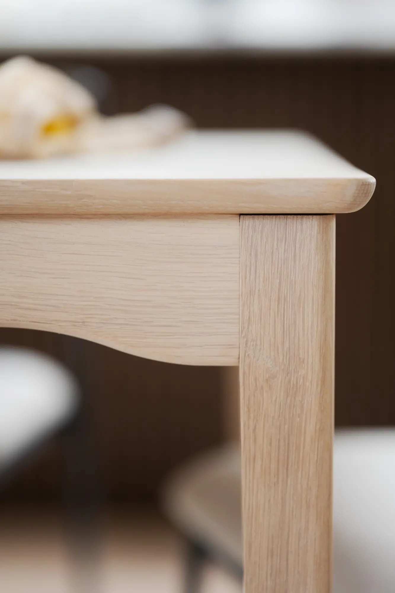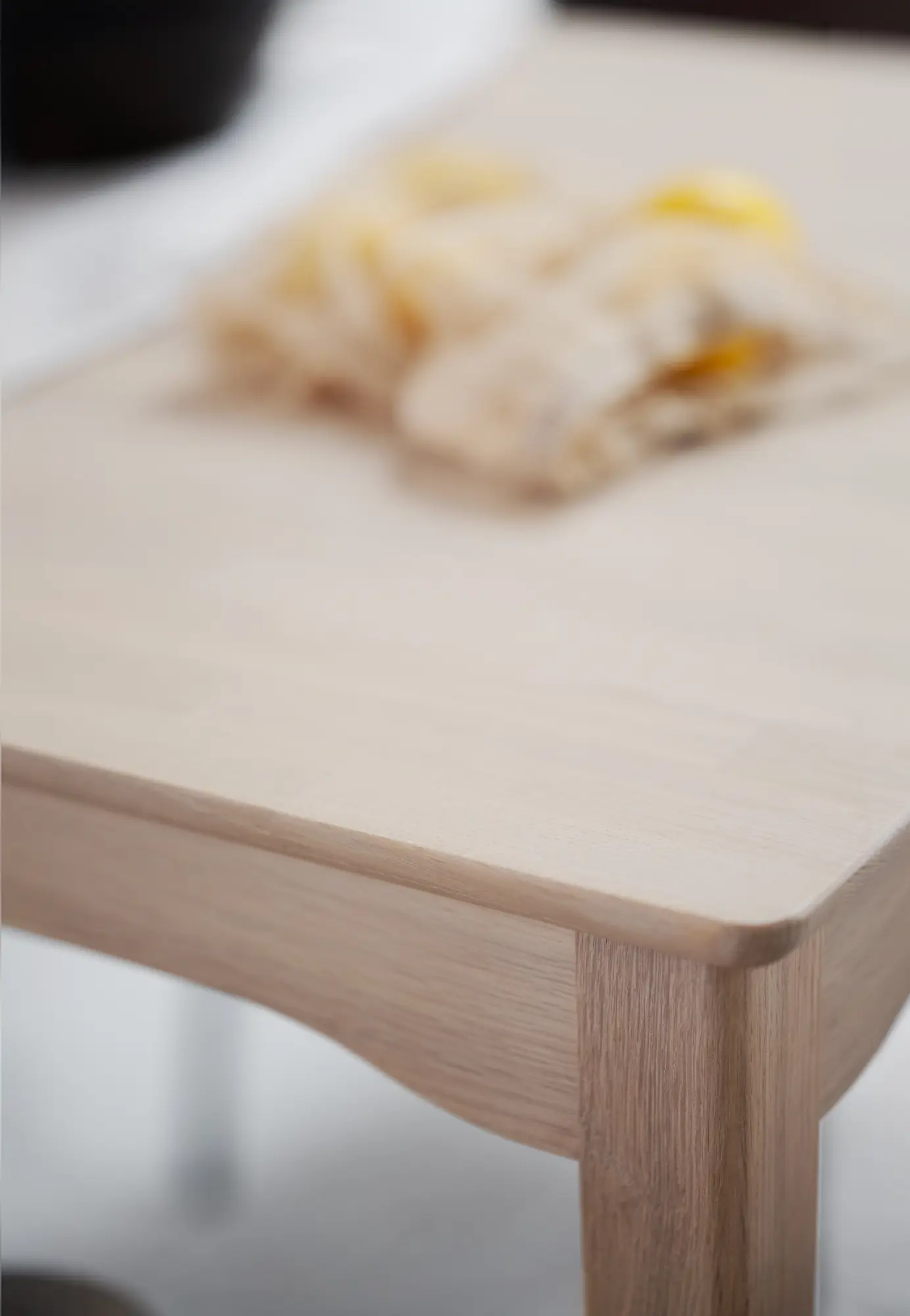 Matbordet har blivit behandlat med Rubio Monocoat som ger en tålig yta och står emot slitage väl. Detta innebär att bordet inte behöver ytterligare behandling innan användning. För att bevara bordets skönhet rekommenderar vi i stället regelbundet underhåll med RUBIO Surface Care för effektiv rengöring av fläckar (vid behov) samt RUBIO Refresh Eco för uppfräschning av träytan (vid behov, upp till 4 ggr per år). Mer information finns i skötselrådet.