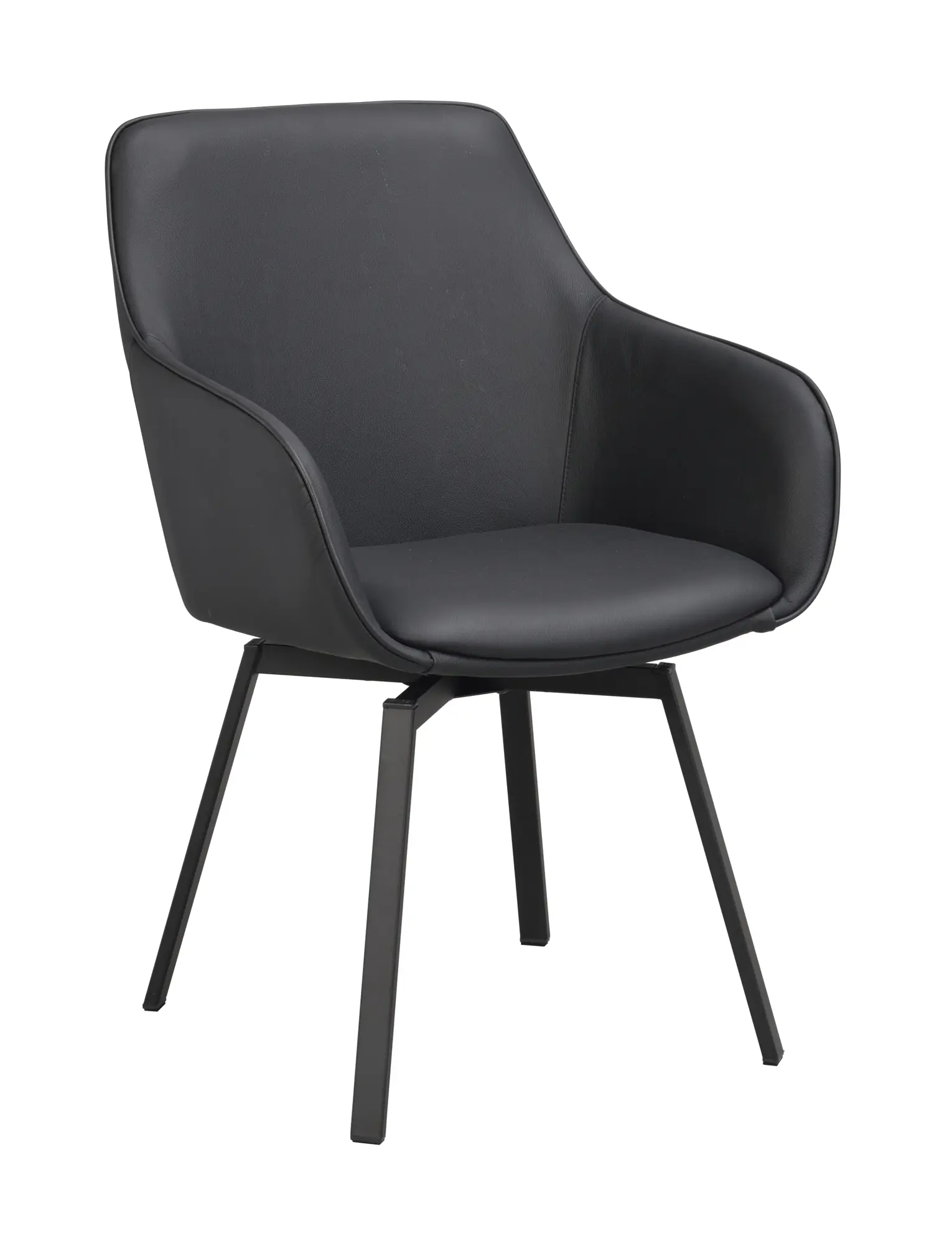 Alison karmstol svart läder/vitpigmenterade ekben snurr