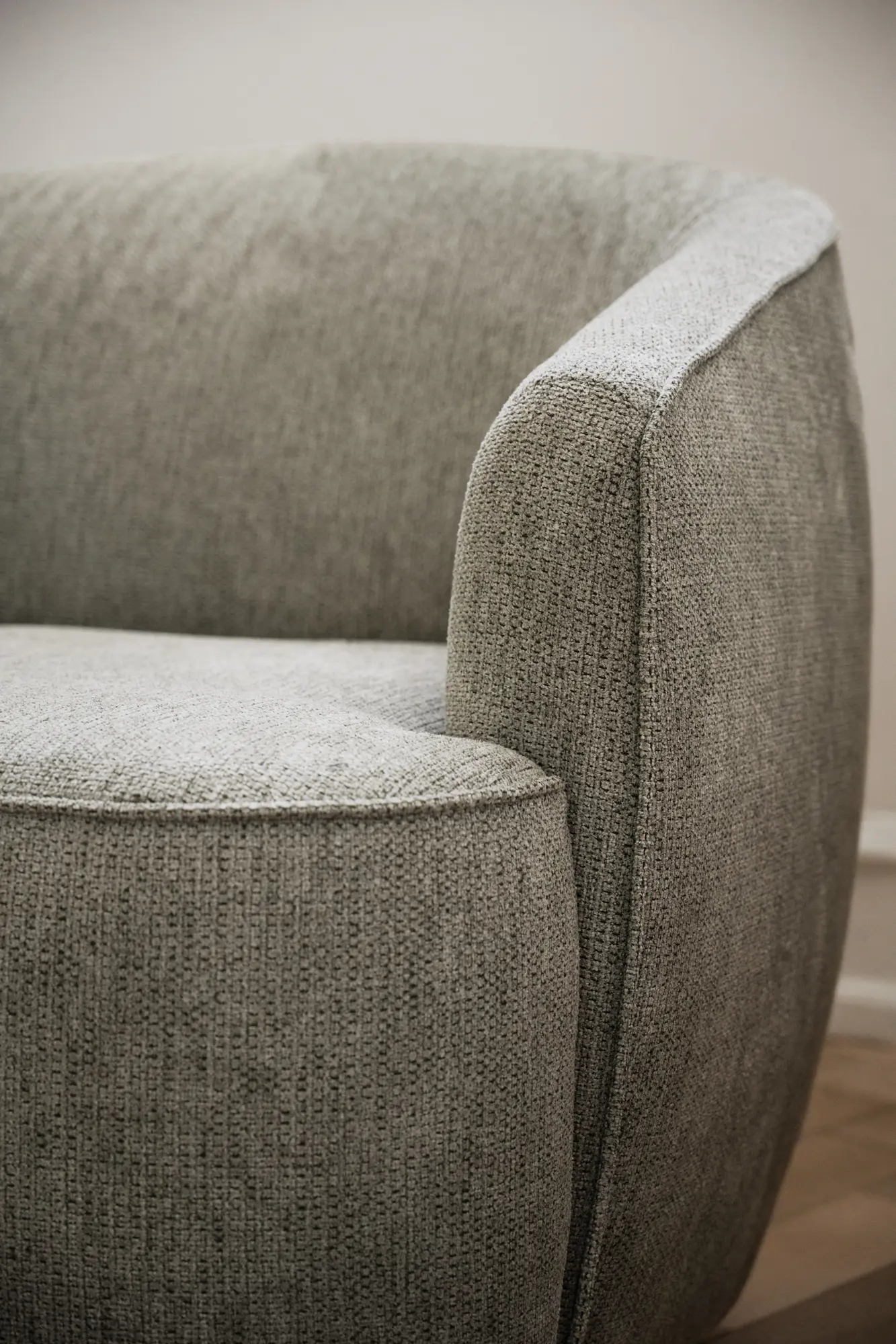 Som lagerförd fåtölj är Dermot klädd i samma tyg som populära Norris soffa i Anna ljusbeige (#2), men fåtöljen går även att beställa i valfritt tyg från vårt beställningssortiment.