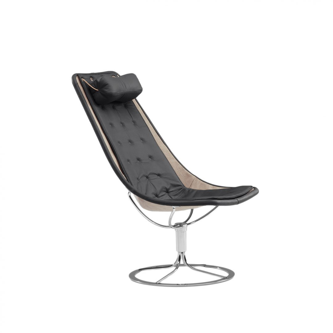 Jetson 66 fåtölj läder Elmosoft 99999 svart/väv linne natur, krom