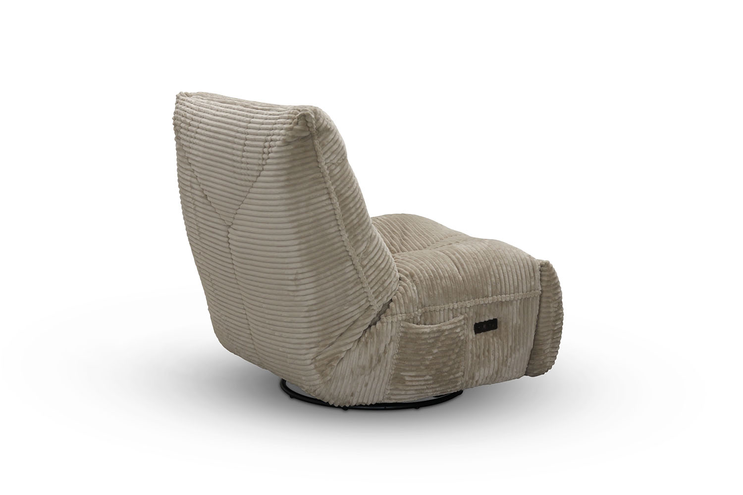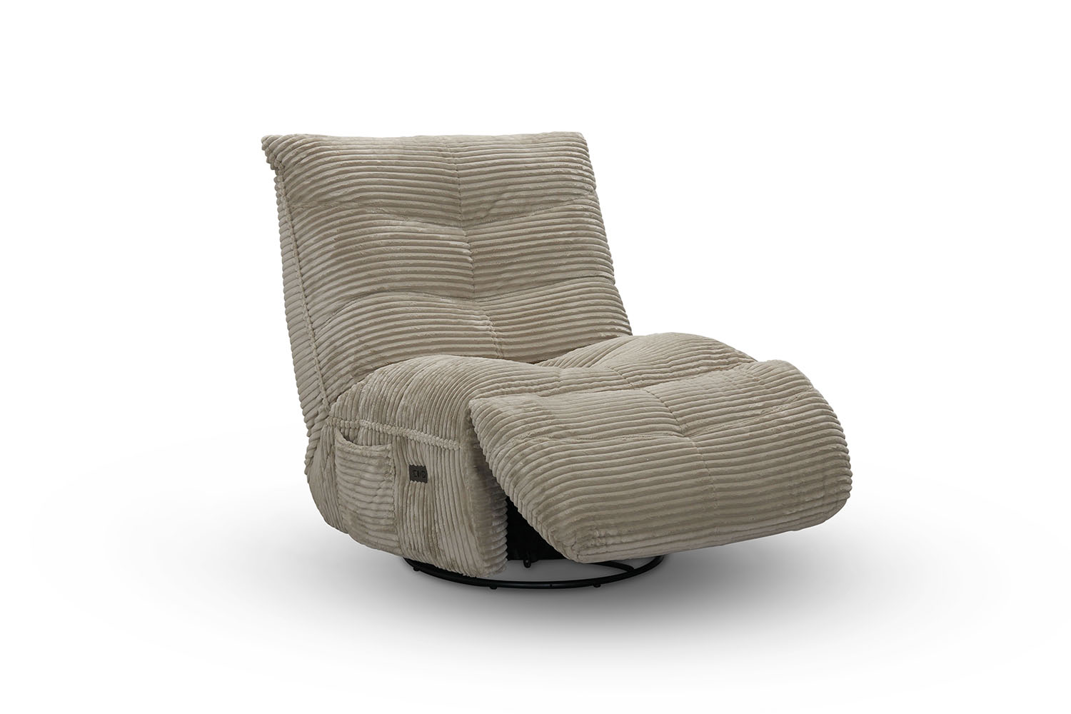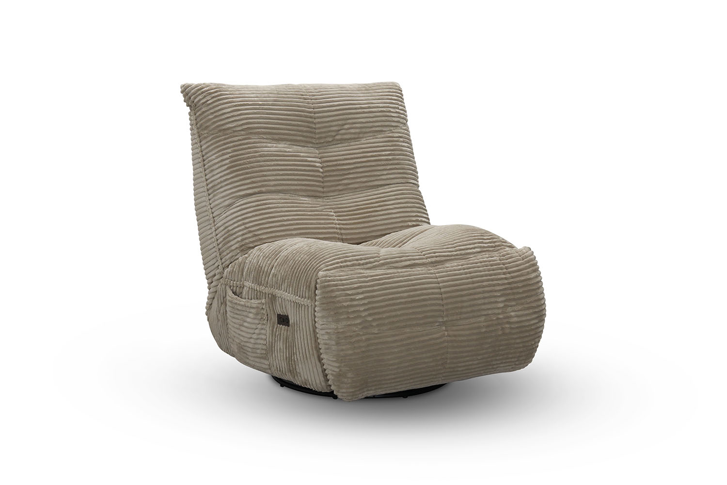 Dakota är en elektrisk reclinerfåtölj med snurr och gung. När rygg och fotstöd fälls, låser sig gungfunktionen automatiskt.