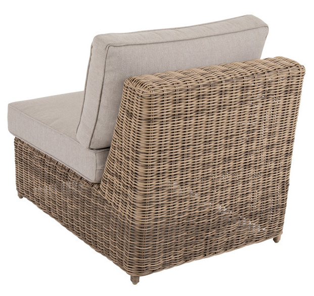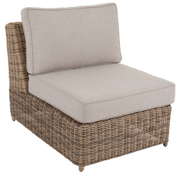 Bygg din egen perfekta Glendon-grupp. Denna mittdel ramar förlänger vilken kombination som helst. Den snygga konstrottingen passar bra in överallt med sin rustika naturfärg. Beigefärgade dynor ingår.
