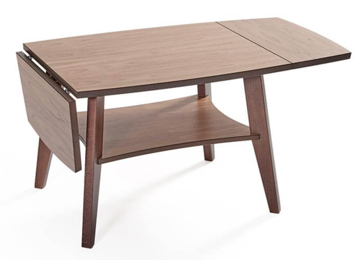 Birdie är ett soffbord som passar både små och stora vardagsrum. I serien finns det tre storlekar och varje bord kan ytterligare varieras i storlek tack vare de två klaffarna. Birdie har också en avlastningshylla undertill. Svensktillverkat!