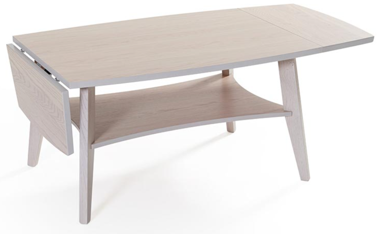 Birdie är ett soffbord som passar både små och stora vardagsrum. I serien finns det tre storlekar och varje bord kan ytterligare varieras i storlek tack vare de två klaffarna. Birdie har också en avlastningshylla undertill. Svensktillverkat!