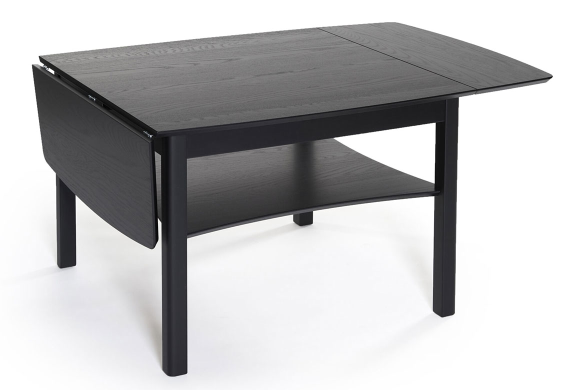 Marathon är ett klassiskt soffbord, fyrkantigt med rundade hörn. Här som klaffbord med två hängklaffar. Det är ett rejält soffbord som har en praktisk underhylla, där du kan lägga prylar som du lätt vill komma åt. Serien finns i flera olika utföranden och görs i flera olika färger. Svensktillverkat!