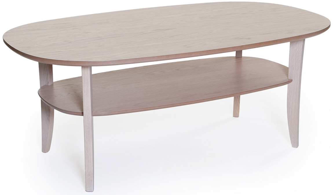 Klassiskt soffbord med rundade hörn och praktisk hylla undertill. Svensktillverkat!
