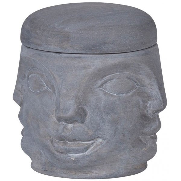 Häftig ljuslykta med lock i stengods. Glaserad insida och rå känsla på utsidan. Med sin fräcka design blir ljuslyktan en snygg inredningsdetalj i hemmet. Plats för värmeljus eller blockljus. Även fin att använda för lite skål till t ex nycklar, smycken eller andra småsaker.