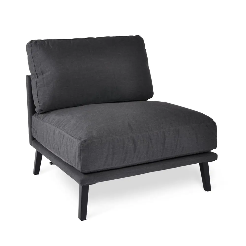 Mittdel till Easy hörnsoffa med vattenavstötande och mögelavvisande sunbrelladynor i quickdryfoam. Dynorna kan avlägsnas vid behov. Stomme i aluminium. Gruppen kan stå ute i alla väder. Torka av soffan med en torr trasa efter en regnskur, 30 min senare är den sittbar igen.