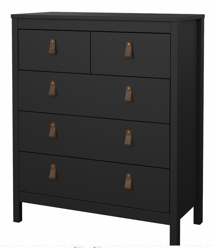 Förhöj ditt utrymme med Madrid-byrån som sömlöst passar in i alla moderna inredningsstilar och ger ditt rum en touch av sofistikering. Med fem lådor erbjuder denna byrå gott om förvaringsutrymme. Två handtag, ett i läder och en knopp, ingår för att justera utseendet.