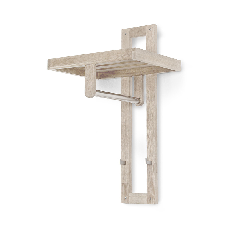 Zitti klädhylla enkel är tillverkad massiv vitoljad ek. Denna praktiska och lättplacerade klädhylla för väggmontage passar i de flesta hallmiljöer.