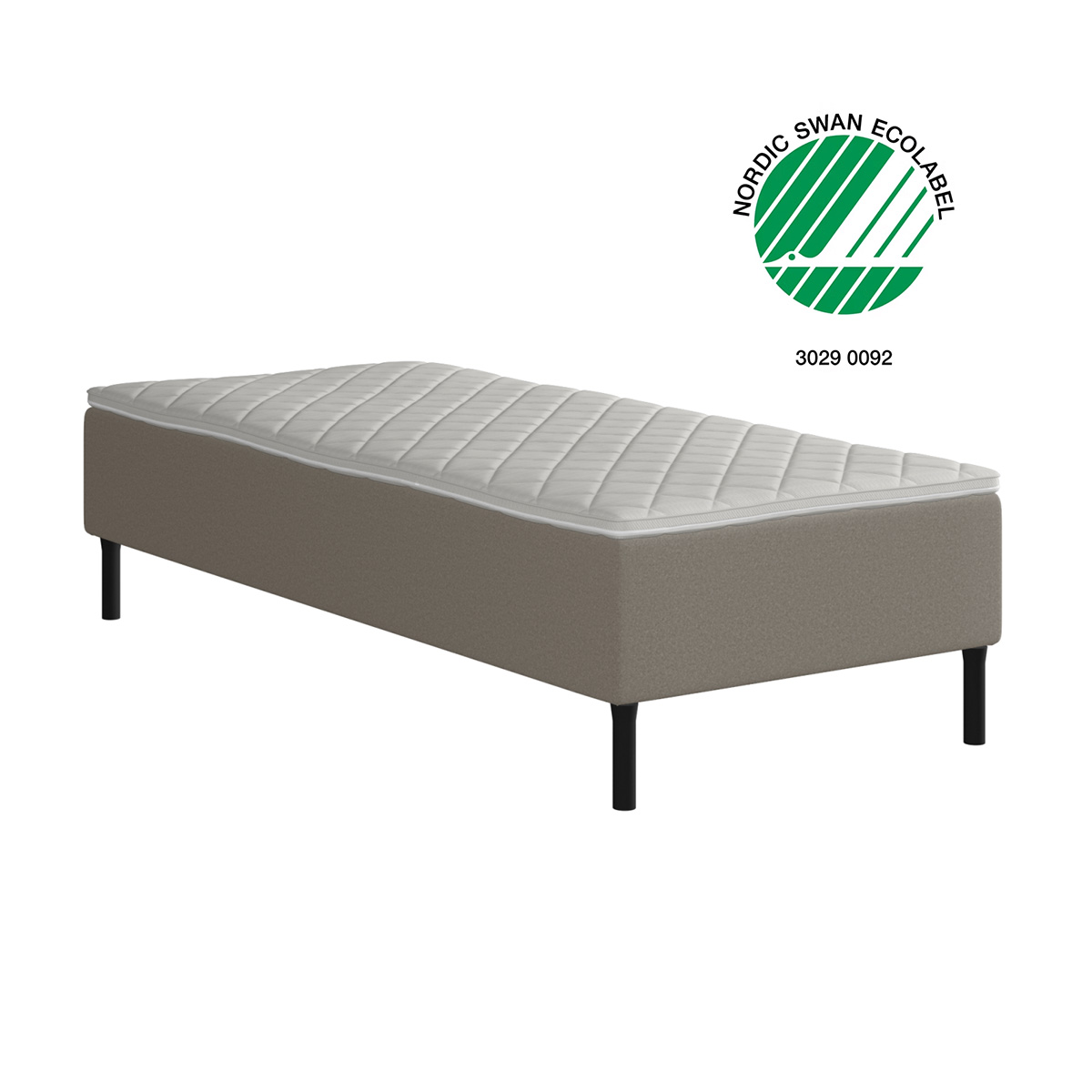 Tall är Svanenmärkt, tillverkas i Sverige och är präglad av hantverksstolthet och kärlek. Tall är sängen som erbjuder god avlastning med sitt vändbara och zonindelade resårsystem. De 5 zonerna avlastar hela din kropp så du kan sova tryggt och vakna utvilad. Gedigen ram (8 cm) och ribbotten av FSC certifierat trä. Dubbelfjädrad säng med 9 cm pocketresår i ramen och en 13 cm, 5 zonad kassett med vändbar pocketresår för god följsamhet. Avtagbar klädsel som möjliggör att du kan rotera pocketresåren och tvätta klädseln. Välj mellan medium (ej 140 cm), fast och extra fast liggkomfort. Det finns flera val på färger, tyger och ben. Komplettera med ditt val av bäddmadrass.