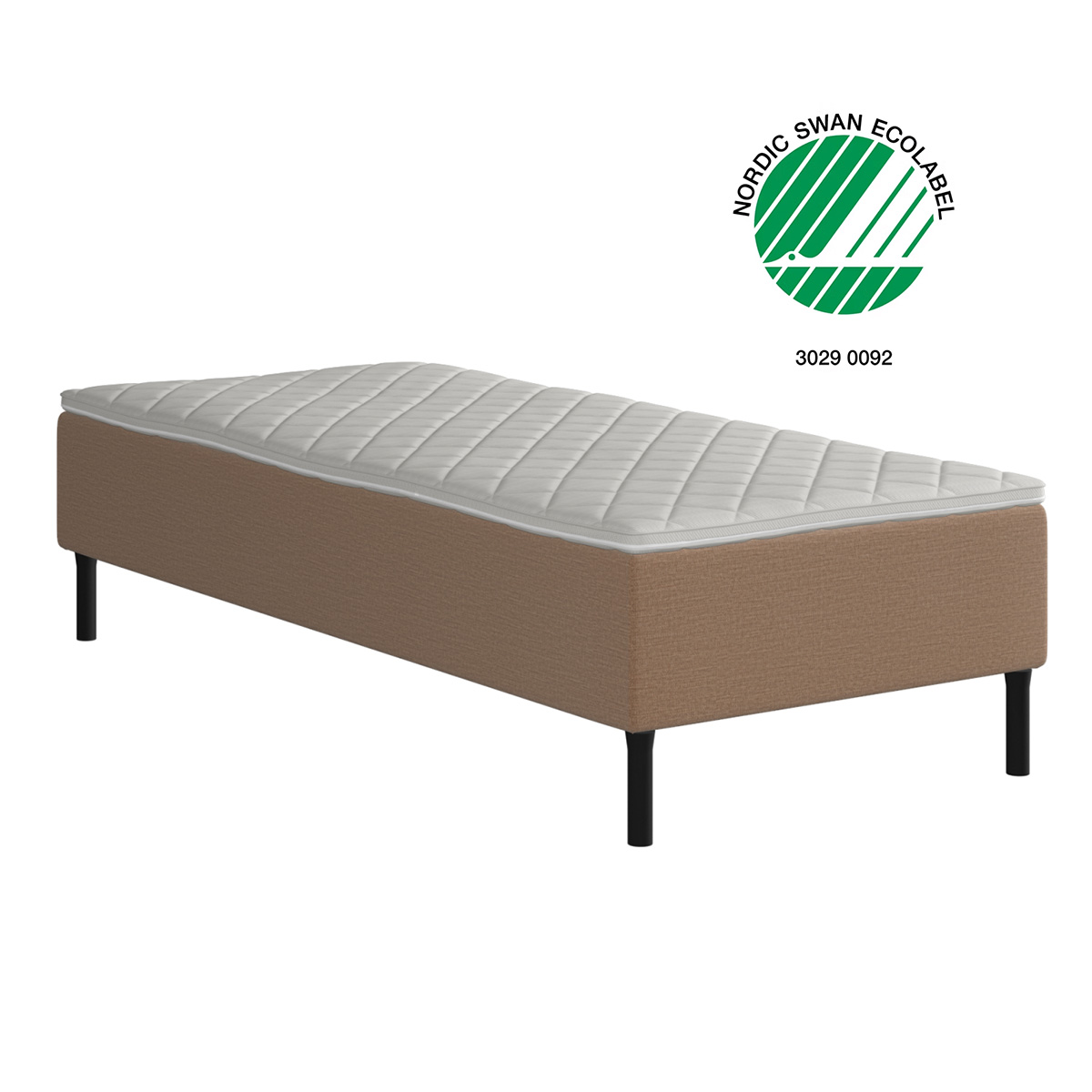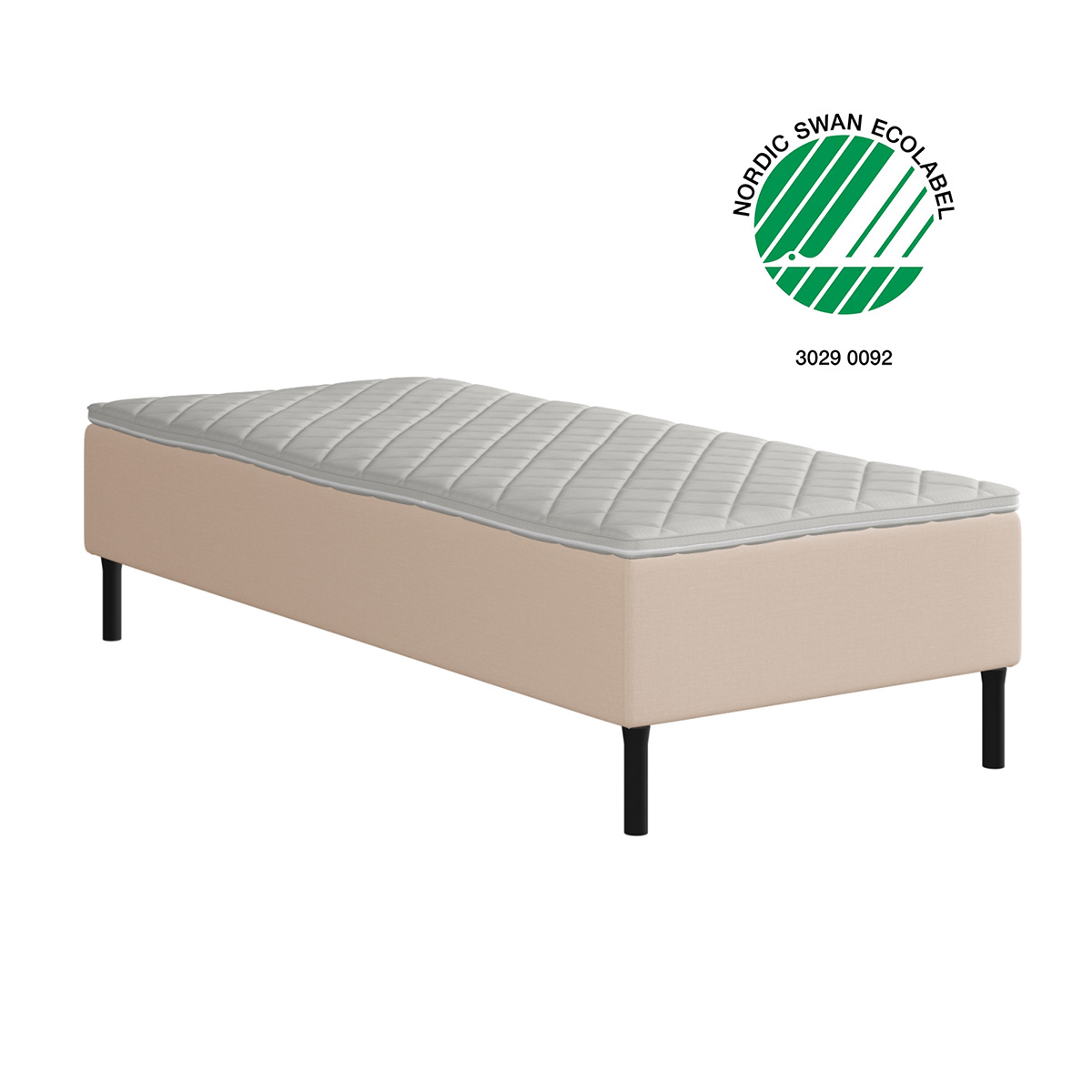 Tall är Svanenmärkt, tillverkas i Sverige och är präglad av hantverksstolthet och kärlek. Tall är sängen som erbjuder god avlastning med sitt vändbara och zonindelade resårsystem. De 5 zonerna avlastar hela din kropp så du kan sova tryggt och vakna utvilad. Gedigen ram (8 cm) och ribbotten av FSC certifierat trä. Dubbelfjädrad säng med 9 cm pocketresår i ramen och en 13 cm, 5 zonad kassett med vändbar pocketresår för god följsamhet. Avtagbar klädsel som möjliggör att du kan rotera pocketresåren och tvätta klädseln. Välj mellan medium (ej 140 cm), fast och extra fast liggkomfort. Det finns flera val på färger, tyger och ben. Komplettera med ditt val av bäddmadrass.