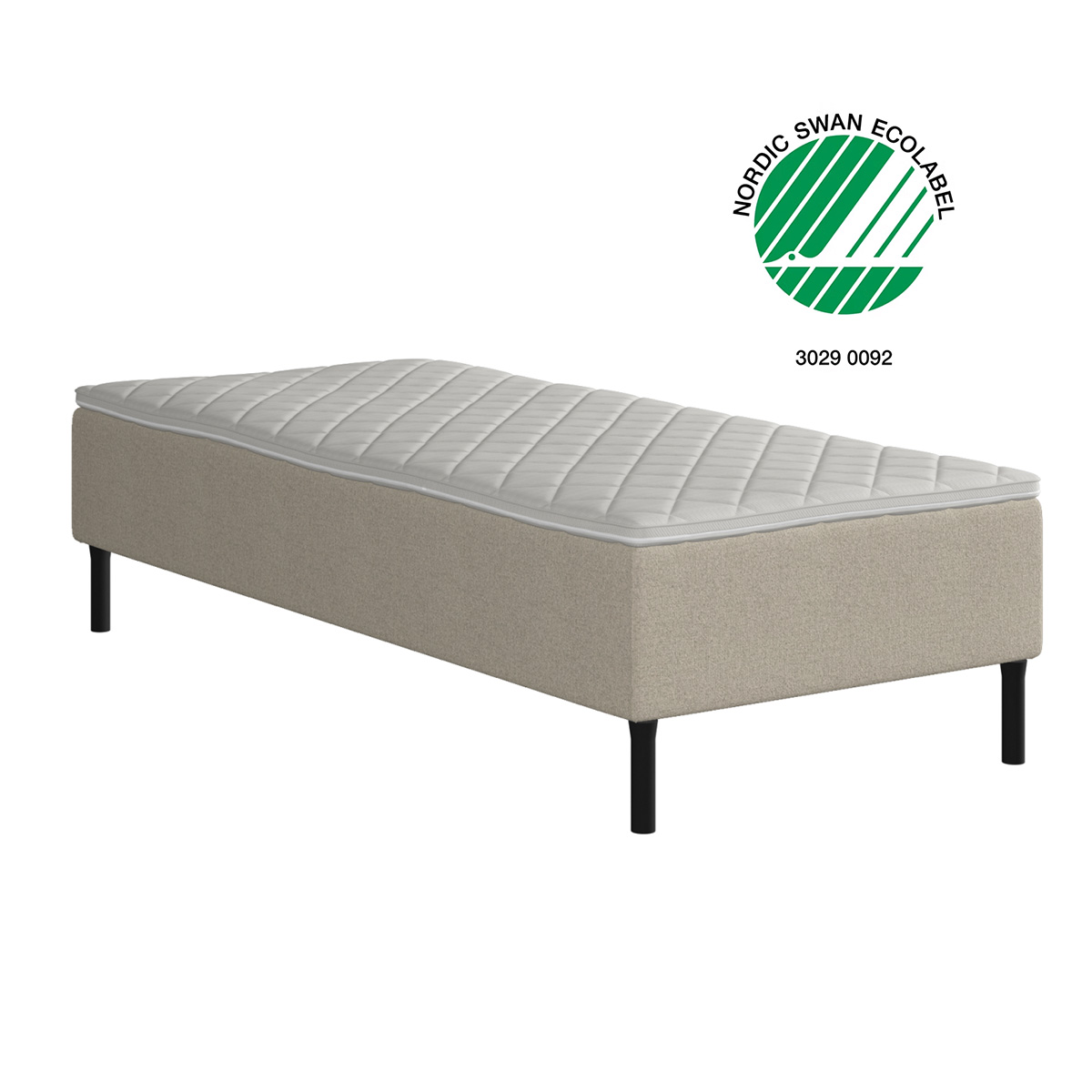 Tall är Svanenmärkt, tillverkas i Sverige och är präglad av hantverksstolthet och kärlek. Tall är sängen som erbjuder god avlastning med sitt vändbara och zonindelade resårsystem. De 5 zonerna avlastar hela din kropp så du kan sova tryggt och vakna utvilad. Gedigen ram (8 cm) och ribbotten av FSC certifierat trä. Dubbelfjädrad säng med 9 cm pocketresår i ramen och en 13 cm, 5 zonad kassett med vändbar pocketresår för god följsamhet. Avtagbar klädsel som möjliggör att du kan rotera pocketresåren och tvätta klädseln. Välj mellan medium (ej 140 cm), fast och extra fast liggkomfort. Det finns flera val på färger, tyger och ben. Komplettera med ditt val av bäddmadrass.
