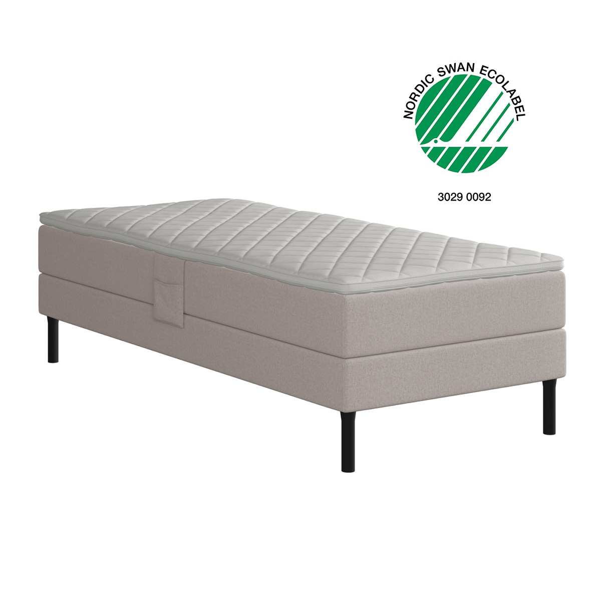 Tall ställbar säng är svanenmärkt och tillverkas i Sverige och är präglad av hantverksstolthet och kärlek. Tall är sängen som erbjuder god avlastning med sitt vändbara och zonindelade resårsystem. De 5 zonerna avlastar hela din kropp så du kan sova tryggt och vakna utvilad. Enkelfjädrad säng med ram med mekanik. Höj- och sänkbar huvud- och fotända. Vändbar madrass med 5 zonat pocketresårsystem, 18 cm ram i FSC märkt trä. Trådlös fjärrkontroll med Bluetooth. Välj mellan medium, fast och extra fast liggkomfort.