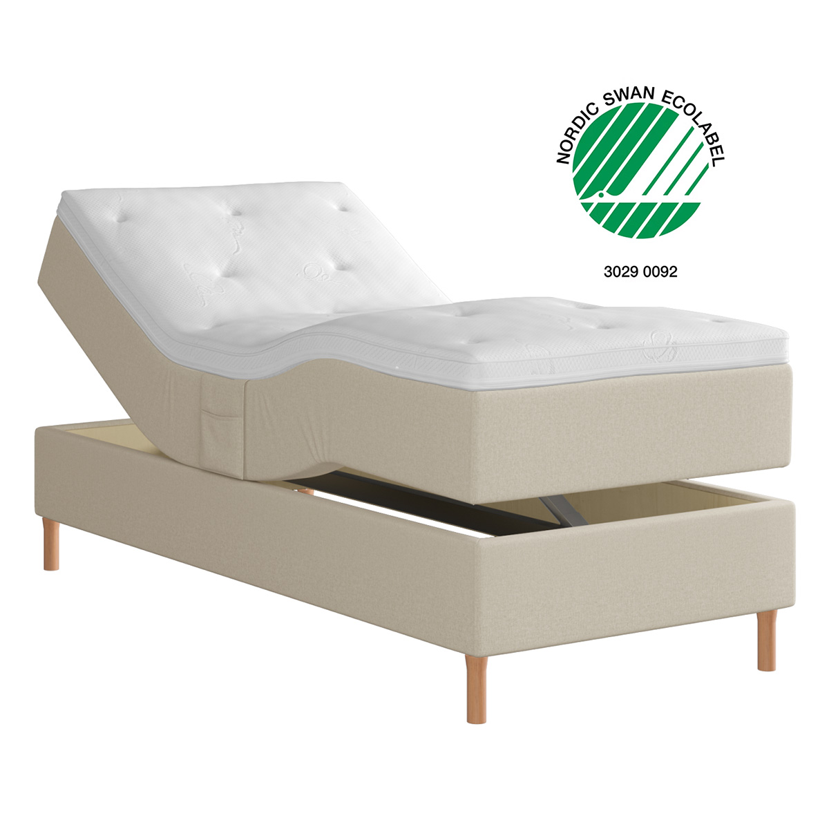 Pris avser Skogslind ställbarsäng 80x200 cm i tyg Eden, exkl bäddmadrass och gavel, inkl ben Elegance eller Colin.