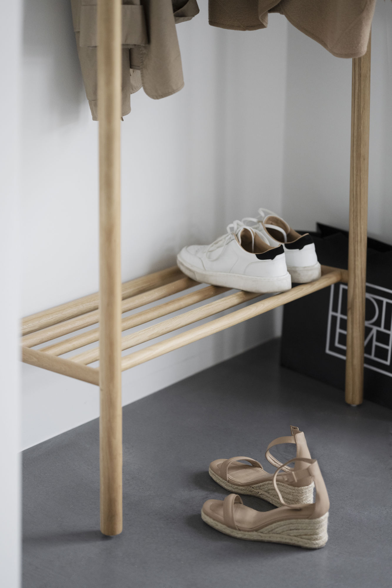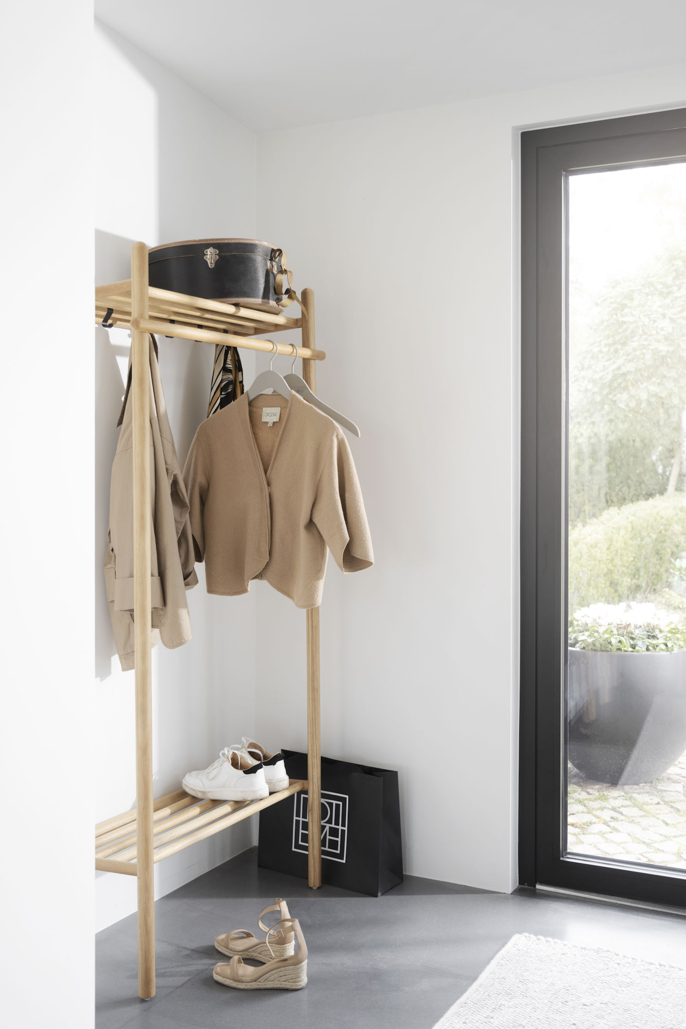 Milford klädställning i lackad massiv ek med svarta metalldetaljer. En praktisk och stilfull klädställning som passar perfekt i hallen. Milford hallserie finns i flera färger.