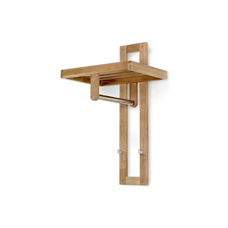 Zitti klädhylla enkel i massiv oljad ek. En praktisk och lättplacerad klädhylla för väggmontage med stång i metall, två krokar samt hylla.