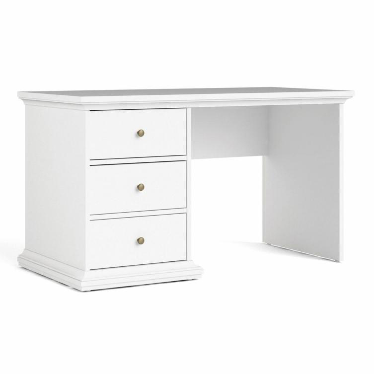 Skrivbord i romantisk stil med knopp handtag. Skrivbordet har gott om förvaring fördelat på 3 lådor placerade till vänster.