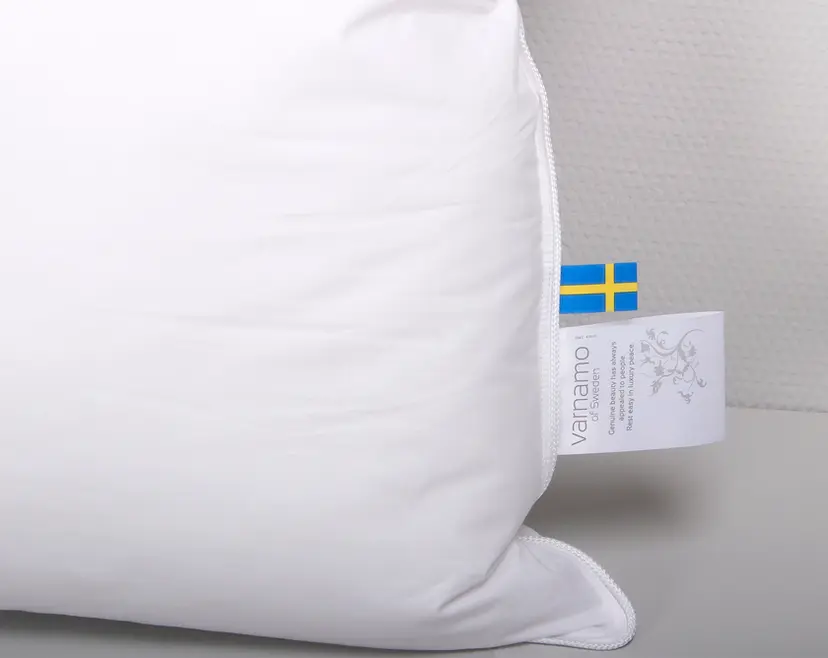 Kudden håller en mycket hög kvalitet och har otroligt fina tvättegenskaper. Sydd med dubbla kantsömmar och kantad med en lyxig vit snörpiping.