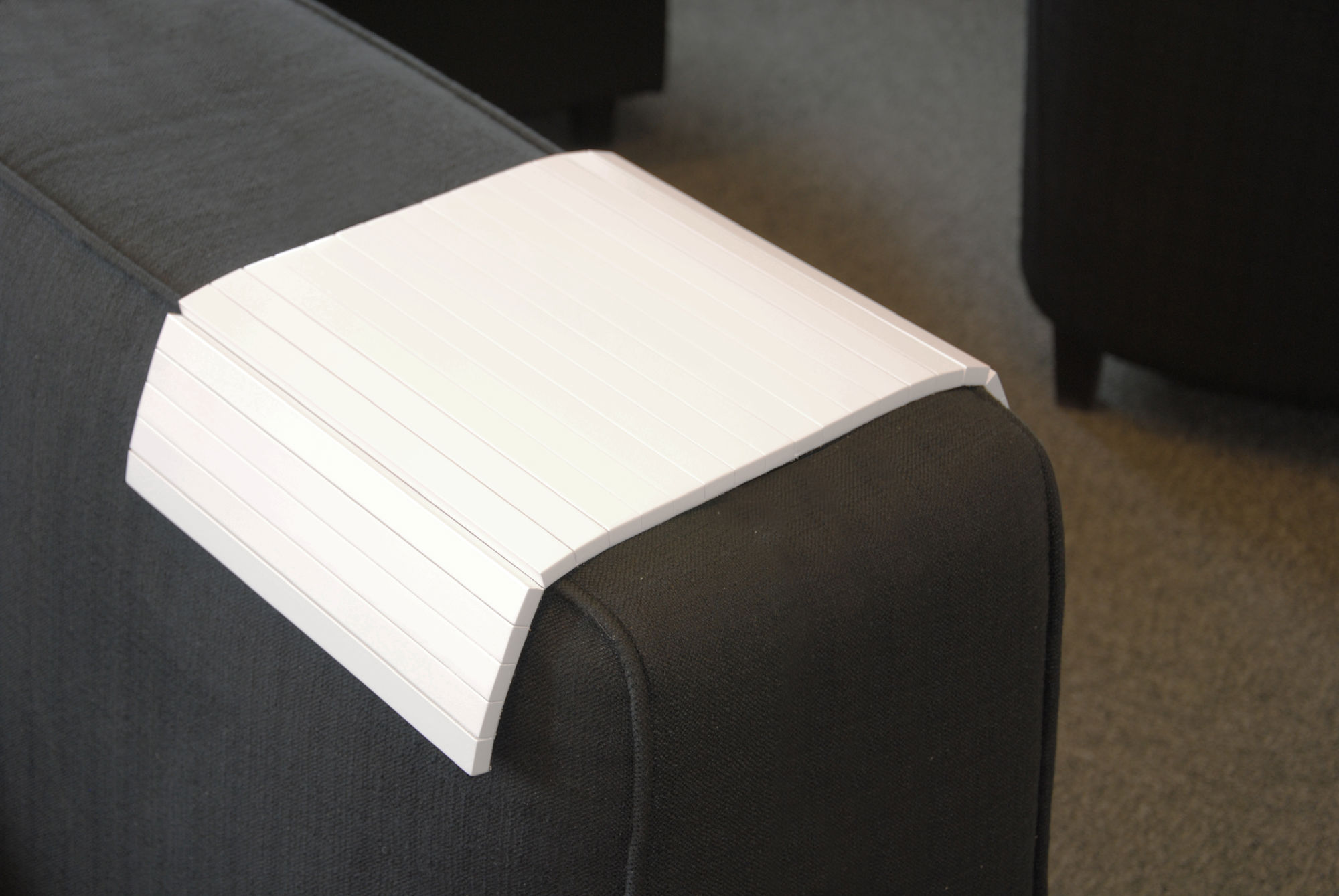 Tray armstödsbricka i vitlackad björk. Praktisk avlastningsyta på soffor med lite bredare armstöd. Armstödsbrickan ingår i vår serie Tray.