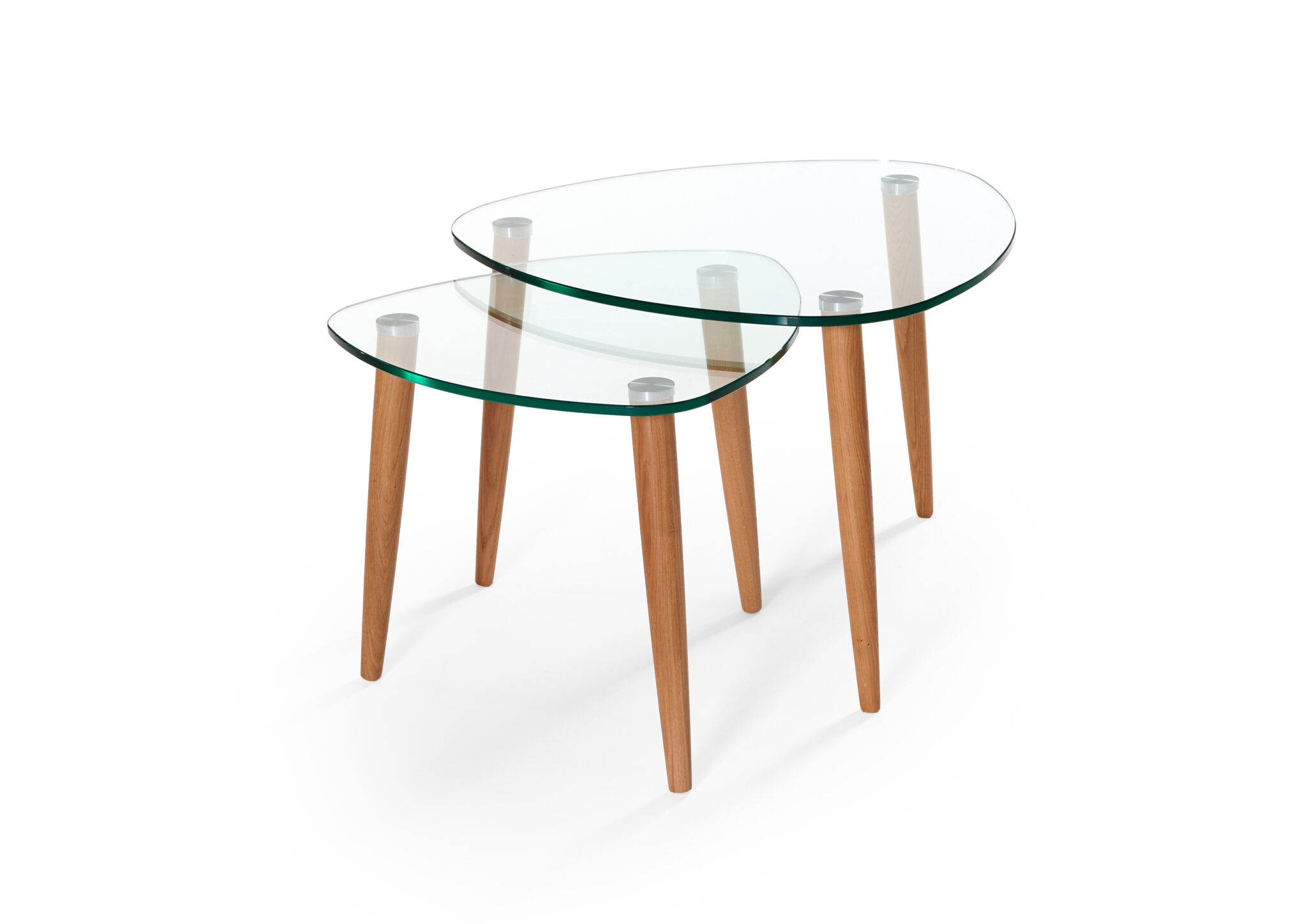 Clear soffbord är ett soffbord med härdad glasskiva och snygga träben i fem olika träslag/färger. Borden kan med fördel användas som satsbord om man väljer båda storlekarna. Borden säljs separat. Välj till hjul för mer flexibilitet. Svensktillverkat!