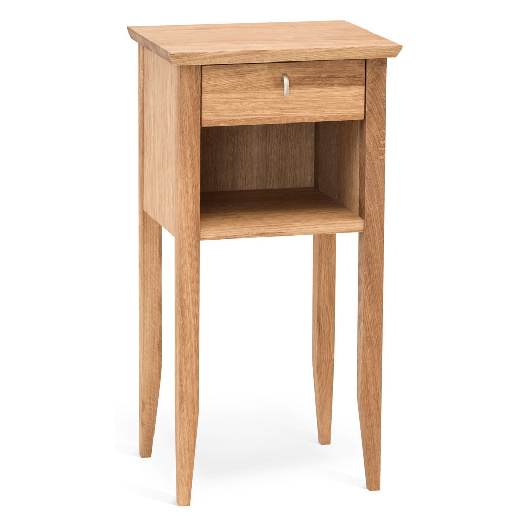Ekliden är ett klassiskt, stilrent sängbord från Torkelson. Tillverkat helt i massiv och fanérad oljad ek, har en liten låda samt en hylla för avlastning. Benen har en elegant vinkling nedtill vilket ger Ekliden sängbord en snygg och elegant design. Sängbordet har bra höjd, passar även bra till kontinentalsängar. Från Torkelson. Kommer monterat.