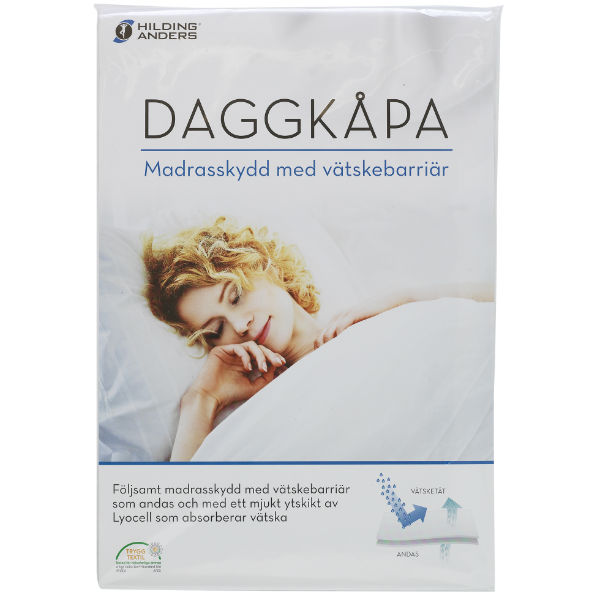 Daggkåpa är ett följsamt madrasskydd med vätskebarriär som andas och med ett mjukt ytskikt som absorberar vätska.